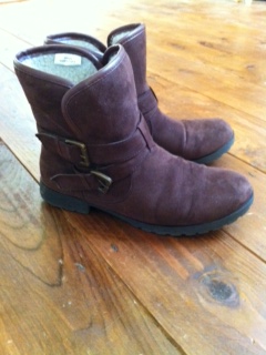 Here are the boots I’ve been wearing happily all day, quite a contrast to the Cinderella sandals my friend loaned me for tonight. Very high heeled sandals may I add.